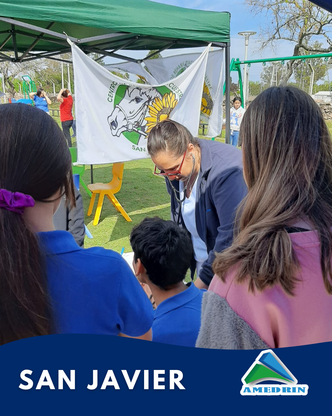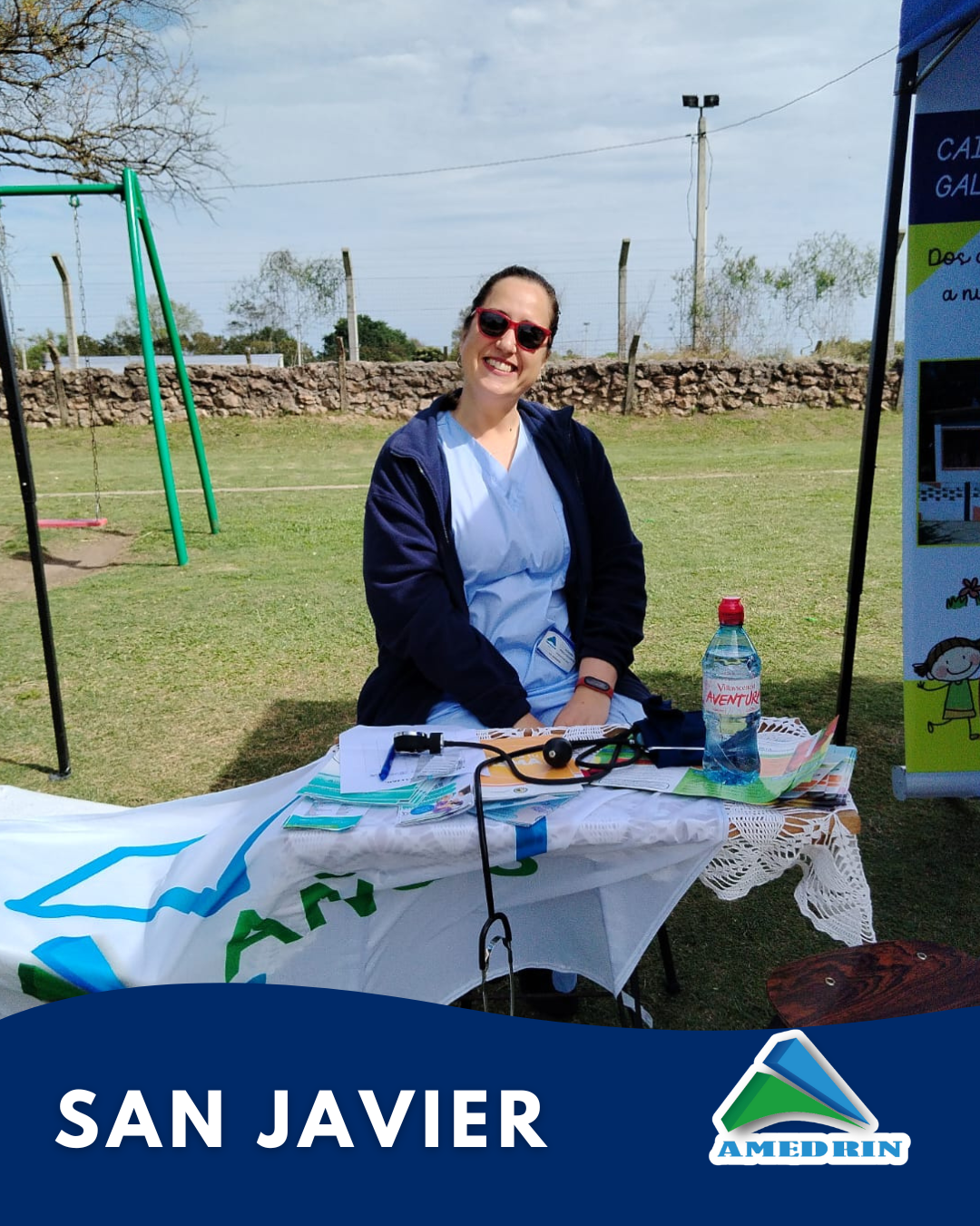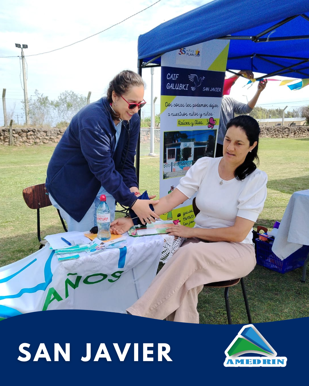 Amedrin estuvo presente este Martes 8 de Octubre en la primer feria educativa «Las Aulas en el Barrio» donde participaron varias instituciones de San Javier. En esta oportunidad en el stand de Amedrin se realizó control de presión arterial. La actividad se realizó en la plaza del Salón Multiuso de la localidad.